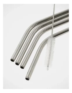 Promo ✨ Vue Set Of 4 Stainless Steel Straws With Brush Cleaner ⌛