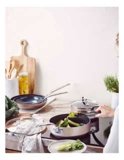 Our Revolution pans are designed to last a lifetime. The series comes in two muted and exquisitely stylish colours. The Riviera set boasts a beautiful moss green design and the Champagne collection gets its colour from the well-known drink with the same name.