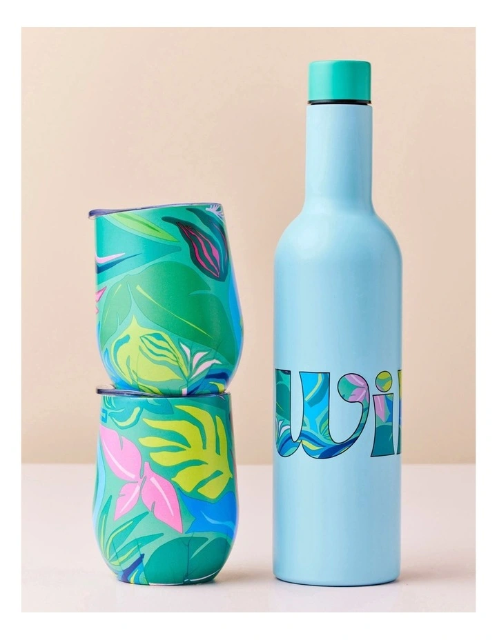 Add some colour to your day with this wine set from the Be Fierce collection. Created in collaboration with Brisbane artist Kasey Rainbow, this cheerful set includes a 750ml leak-proof insulated bottle and two 350ml insulated tumblers. Made from quality double-wall stainless steel, it’s the perfect way to keep your drinks cool for picnics or beach trips. Bright, bold and full of fun, it makes a fun gift idea.