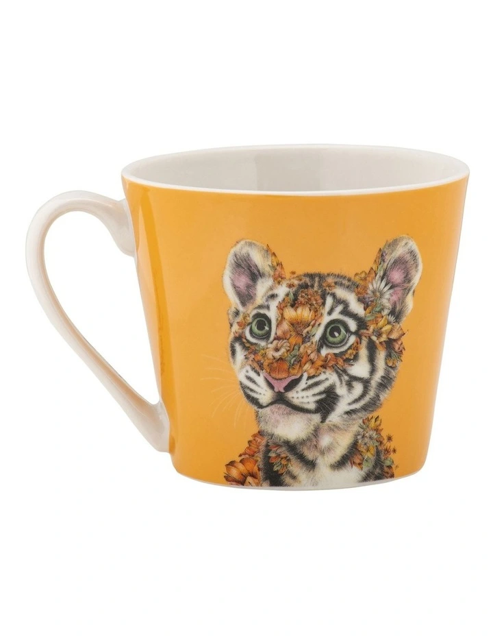 Bring the wild inside with this Tiger mug from the Wild Planet collection. Created in collaboration with artist Marini Ferlazzo, it features a beautiful illustration of young wildlife, embellished with lush flowers and foliage. Made from quality porcelain with a contemporary conical shape, it will make a colourful and stylish addition to your kitchen. This gorgeous mug is full of colour and charm and makes a wonderful gift idea.
