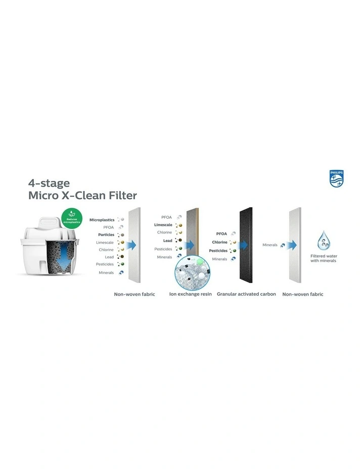Enjoy crisp and pure tasting water, as well as flavourful hot and cold drinks. Philips Micro X-Clean filter reduces chlorine, limescale, heavy metals and emerging contaminants such as microplastics and PFOA.