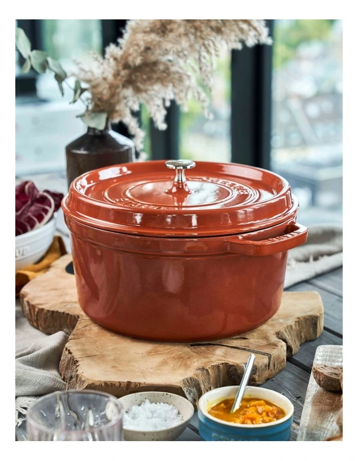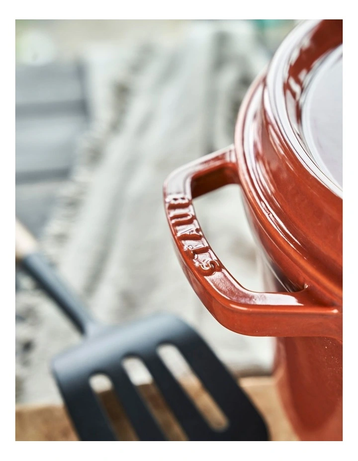 Staub’s special matte black enamel interior and self-basting spiked lid guarantee perfect browning and braising for flavor-enhanced food. With their exquisite enamel finish, each piece transitions beautifully from the kitchen to the table. From comfort food to sumptuous suppers, every dish is special when served in Staub.