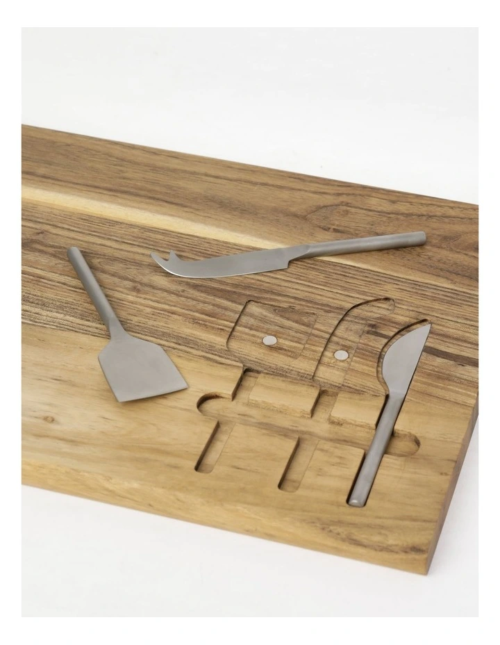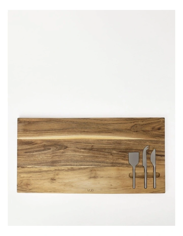 Vue Entertaining 4pc Teak Cheese Plank with 3 Knives