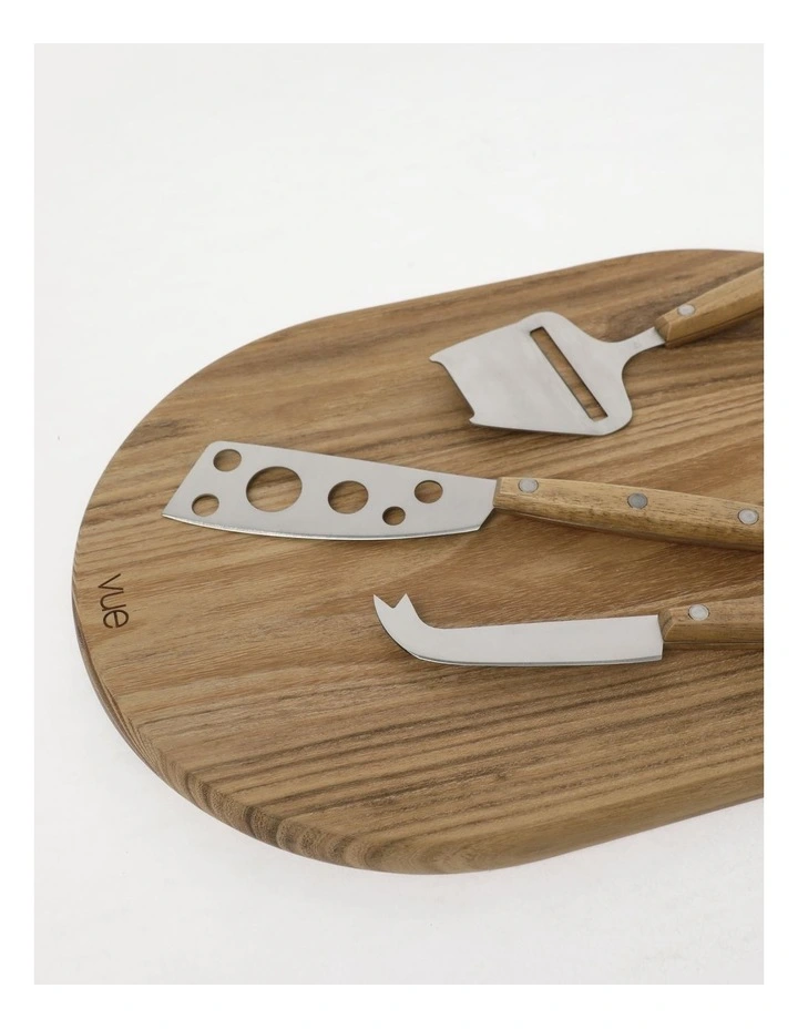 VueΒ Entertaining 4pc Teak Cheese Platter & Knives in Brown